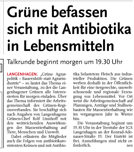 HAZ NHA 31.01.2012 GRÜNE BEFASSEN SICH MIT ANTIBIOTIKA IN LEBENSMITTELN