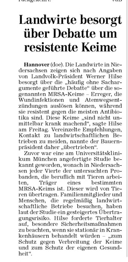 HAZ 14.01.2012 LANDWIRTE BESORGT ÜBER DEBATTE UM RESISTENTE KEIME