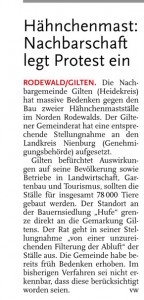 HAZ LZW 18.07.2012 HÄHNCHENMAST NACHBARSCHAFT LEGT PROTEST EIN
