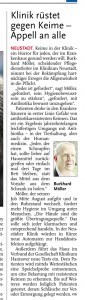 HAZ LZS 28.07.2012 KLINIK RÜSTET GEGEN KEIME - APPELL AN ALLE