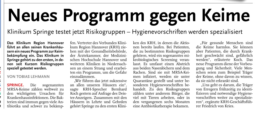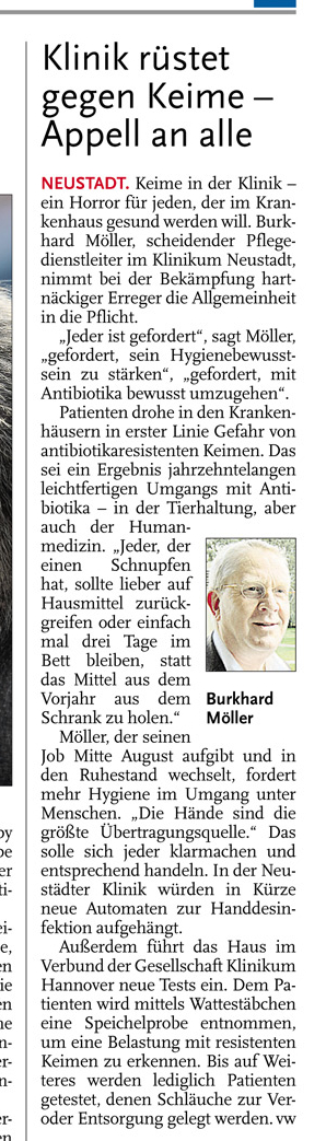 HAZ LZW 28.07.2012 KLINIK RÜSTET SICH GEGEN KEIME