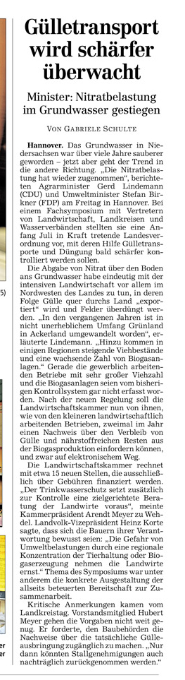HAZ 09.06.2012 GÜLLETRANSPORT WIRD SCHÄRFER ÜBERWACHT
