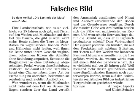 16.05.2012 LESERBRIEF ANNEGRET LIPECKI UND ULRICH SCHULZE, SPRINGE