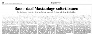 HAZ 18.05.2012 BAUER DARF MASTANLAGE SOFORT BAUEN