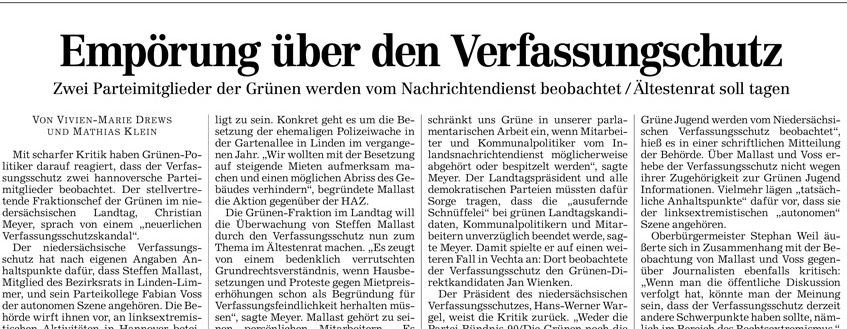 HAZ 06.11.2012 EMPÖRUNG ÜBER DEN VERFASSUNGSSCHUTZ