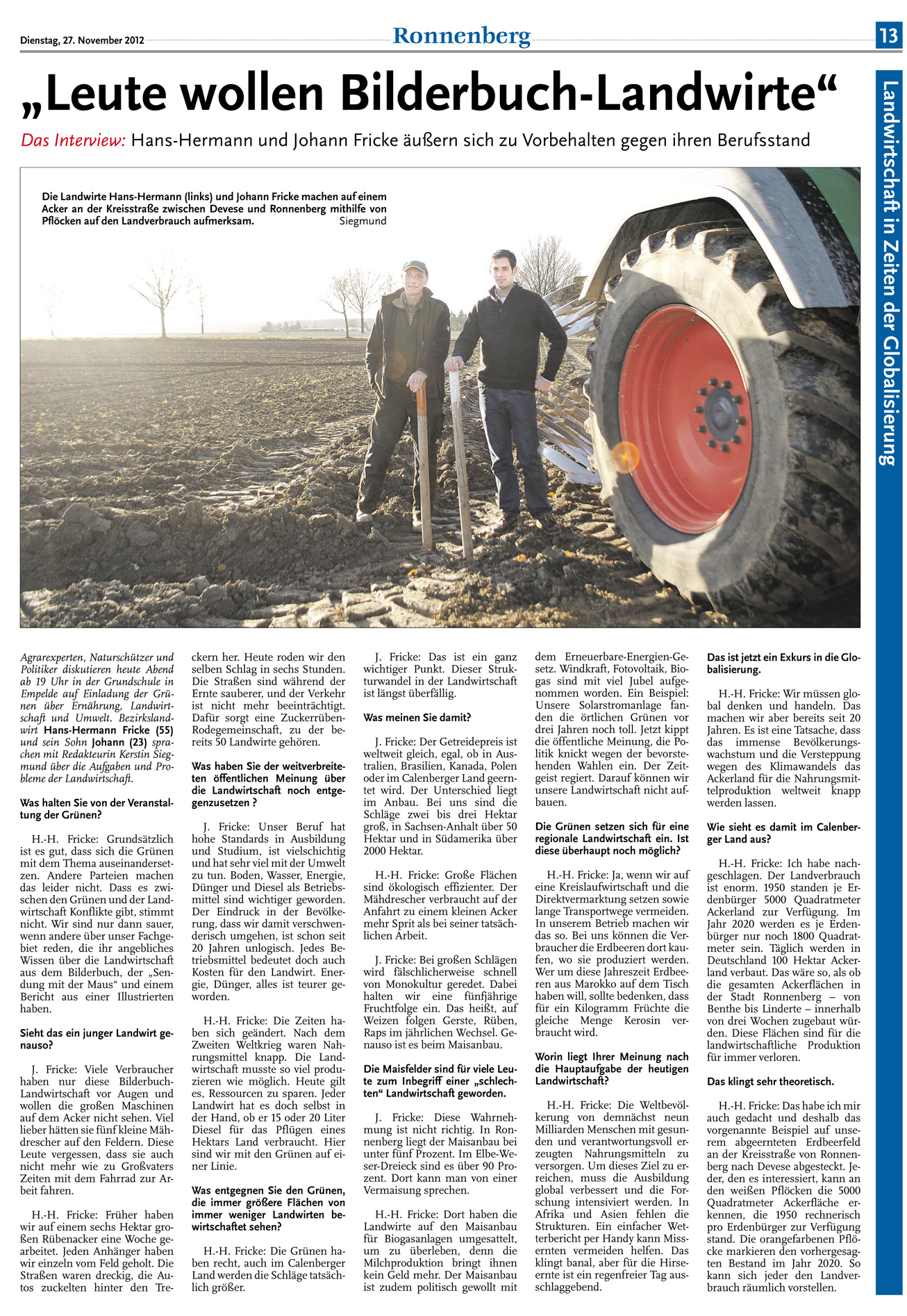 HAZ CZ 27.11.2012 "LEUTE WOLLEN BILDERBUCH-LANDWIRTE"