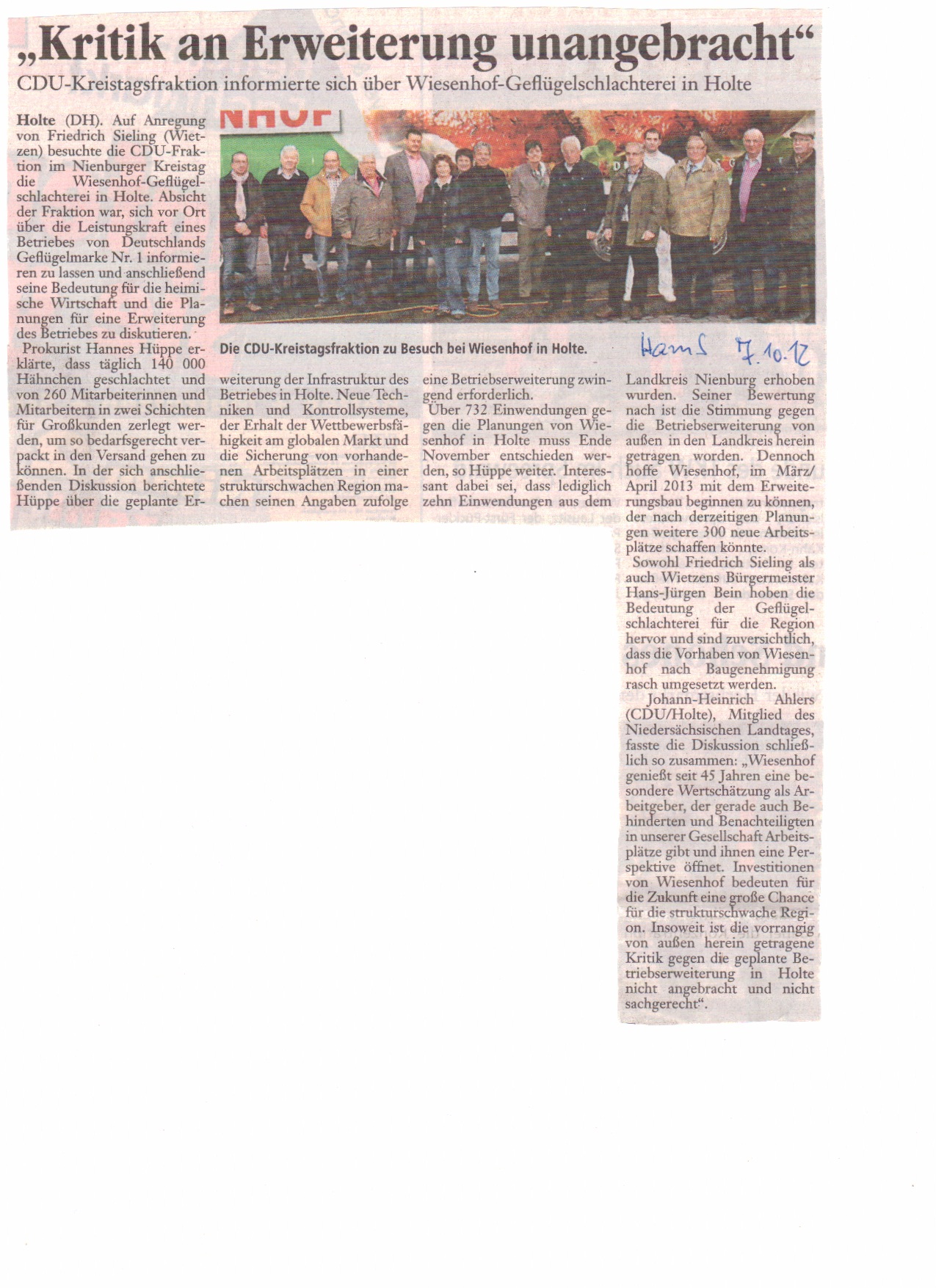 Hier der Artikel der HamS (Harke am Sonntag) vom 07.10.2012: