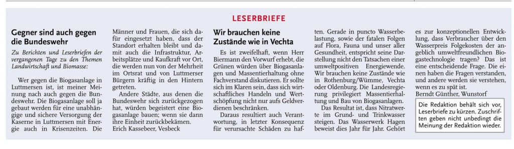HAZ LZW 18.10.2012 LESERBRIEFE ERICH KASSEBEER, VESBECK UND BERNDT GÜNTHER, WUNSTORF