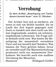 HAZ 19.10.2012 LESERBRIEF HILDEGARD GRÖßER, HANNOVER