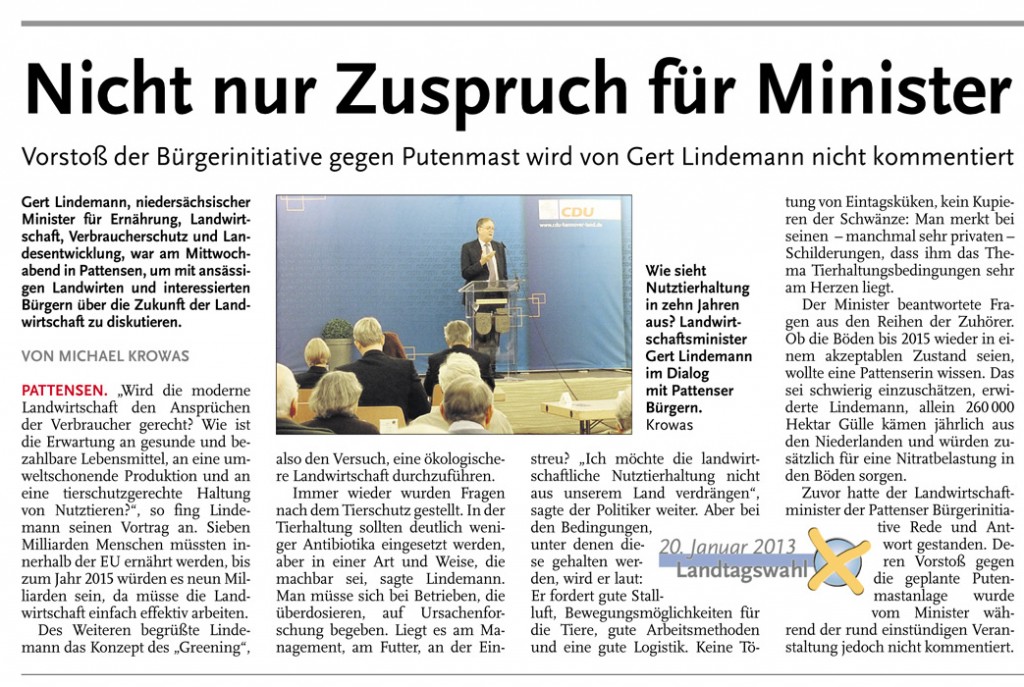 HAZ LN 19.10.2012 NICHT NUR ZUSPRUCH FÜR MINISTER