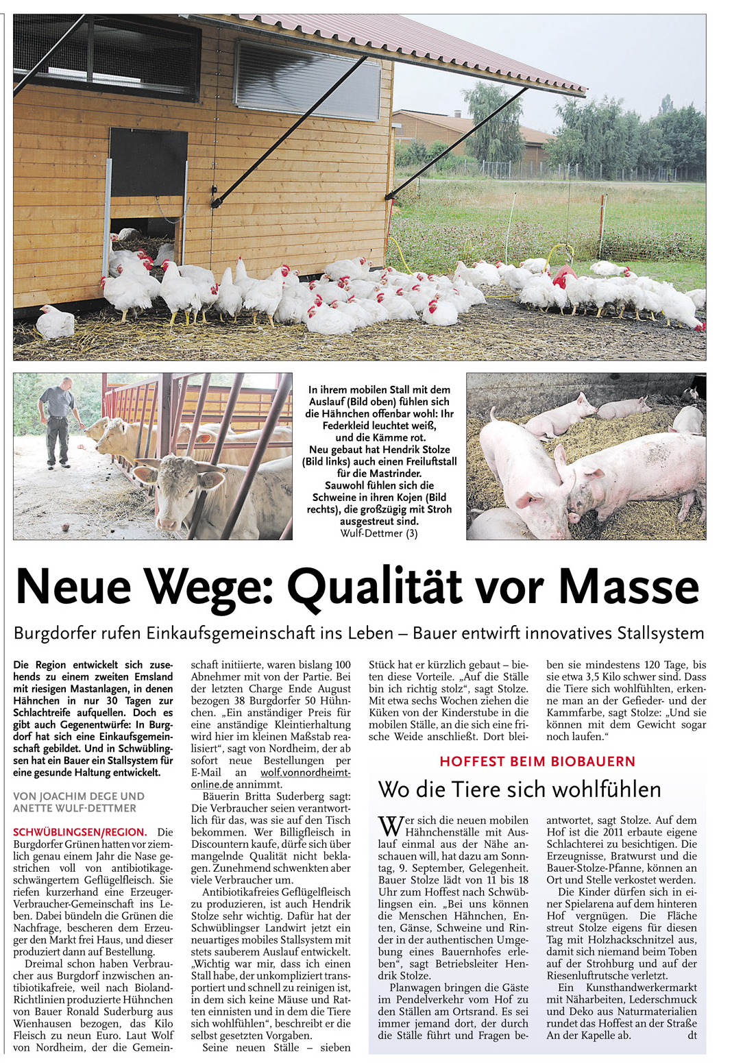 HAZ AB 04.09.2012 NEUE WEGE: QUALITÄT VOR MASSE