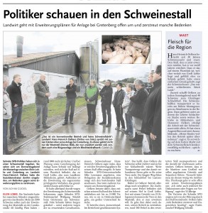 Als einer der Initiatoren der Veranstaltung tritt SPD-Ratsherr Uwe Nötzel auf. „Wir wollen möglichst viele Partner und Interessengruppen an einen Tisch holen, um das Thema zu erörtern“, erklärt er. Themen der Diskussion könnten beispielsweise gesundheitliche Auswirkungen, Belastungen der Umwelt und gesetzliche Grundlagen wie etwa eine Änderung des Paragrafen 35 des Baugesetzbuches, der die Privilegierung von landwirtschaftlichen Vorhaben regelt, sein.