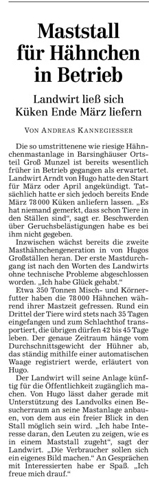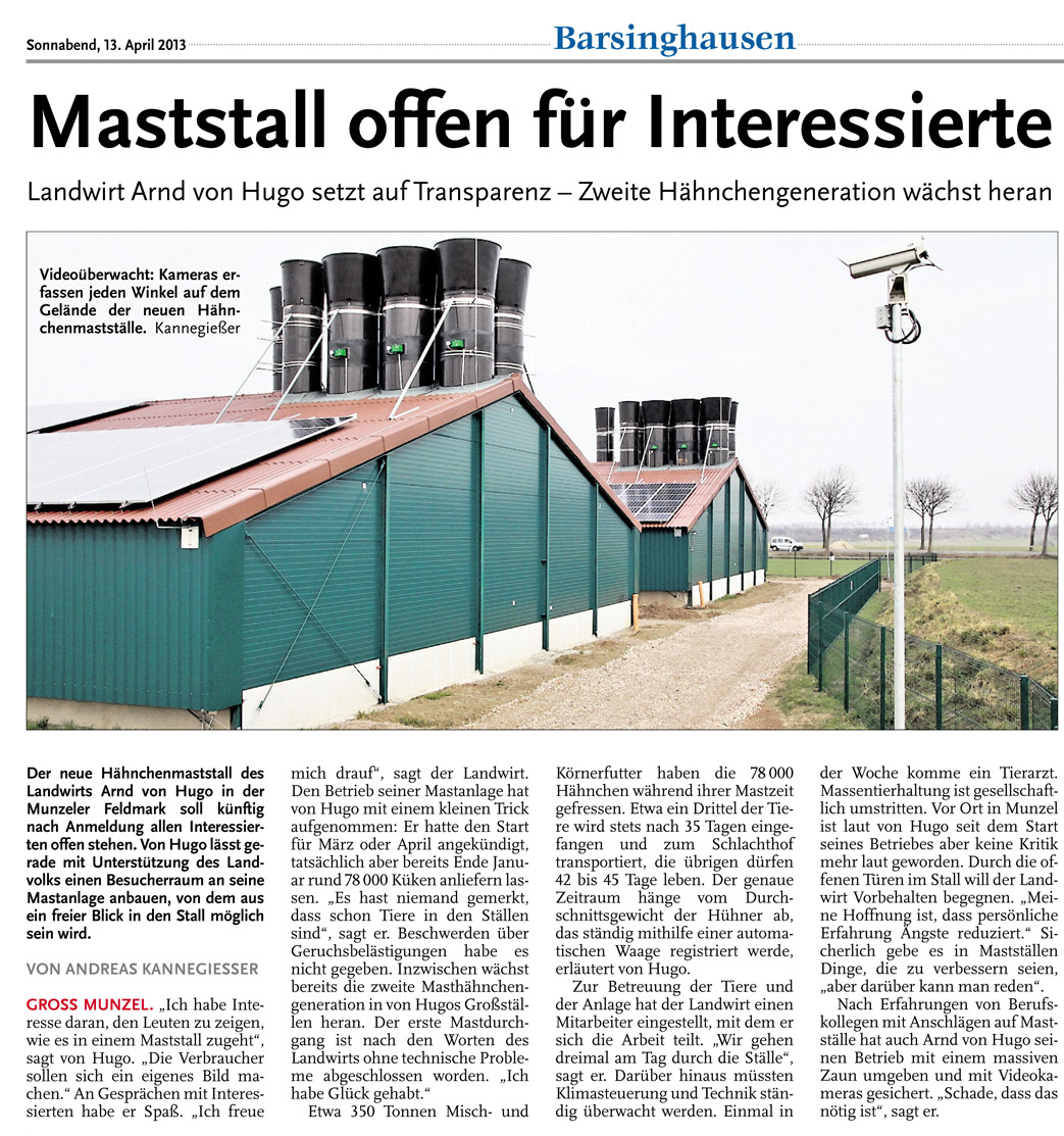HAZ 13.04.2013 MASTSTALL FÜR HÄHNCHEN IN BETRIEB