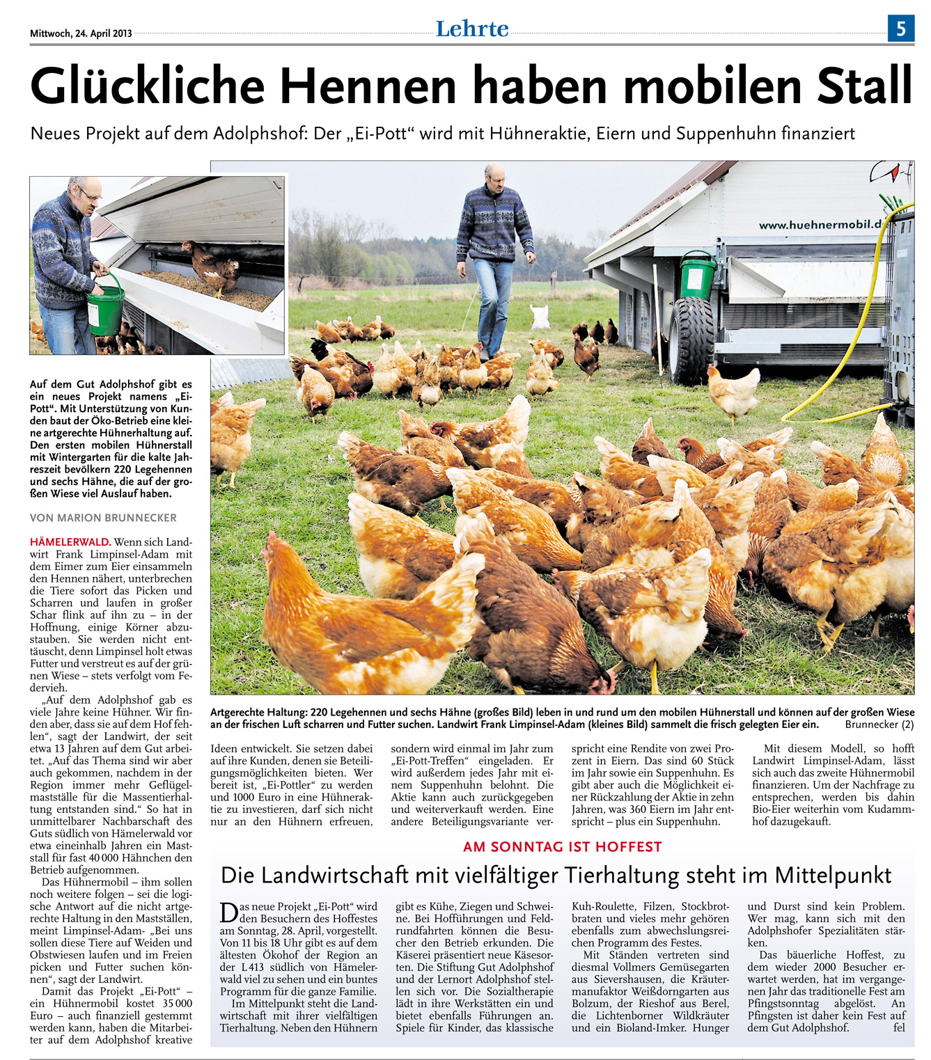 HAZ AB 24.04.2013 GLÜCKLICHE HENNEN HABEN MOBILEN STALL