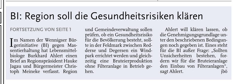 HAZ 24.04.2013 DOCH EIN FILTER FÜR DEN HÜHNERSTALL?