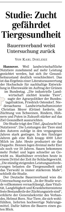 HAZ 15.08.2013 STUDIE ZUCHT GEFÄHRDET TIERGESUNDHEIT