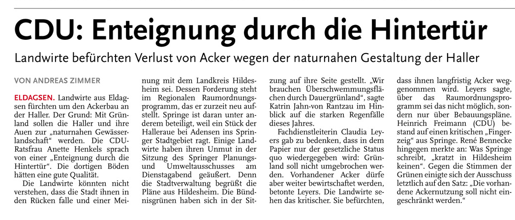 HAZ DA 15.08.2013 CDU ENTEIGNUNG DURCH DIE HINTERTÜR