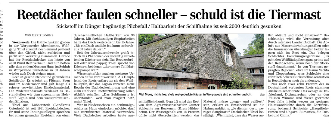 HAZ 21.08.2013 REETDÄCHER FAULEN SCHNELLER – SCHULD IST DIE TIERMAST