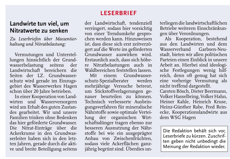 HAZ LZW 14.12.2013 LESERBRIEF KOOPERTAIONSLANDWIRTE WSG HAGEN