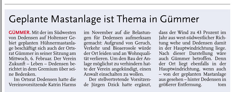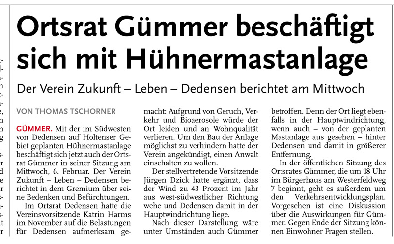 HAZ LZS 01.02.2013 ORTSRAT GÜMMER BESCHÄFTIGT SICH MIT HÜHNERMASTANLAGE
