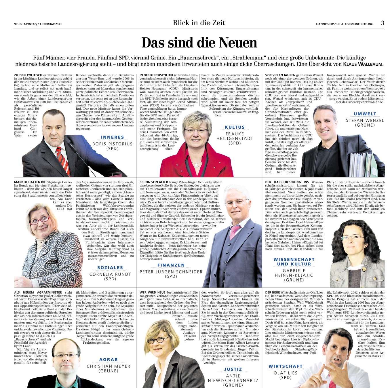 HAZ 11.02.2013 DAS SIND DIE NEUEN