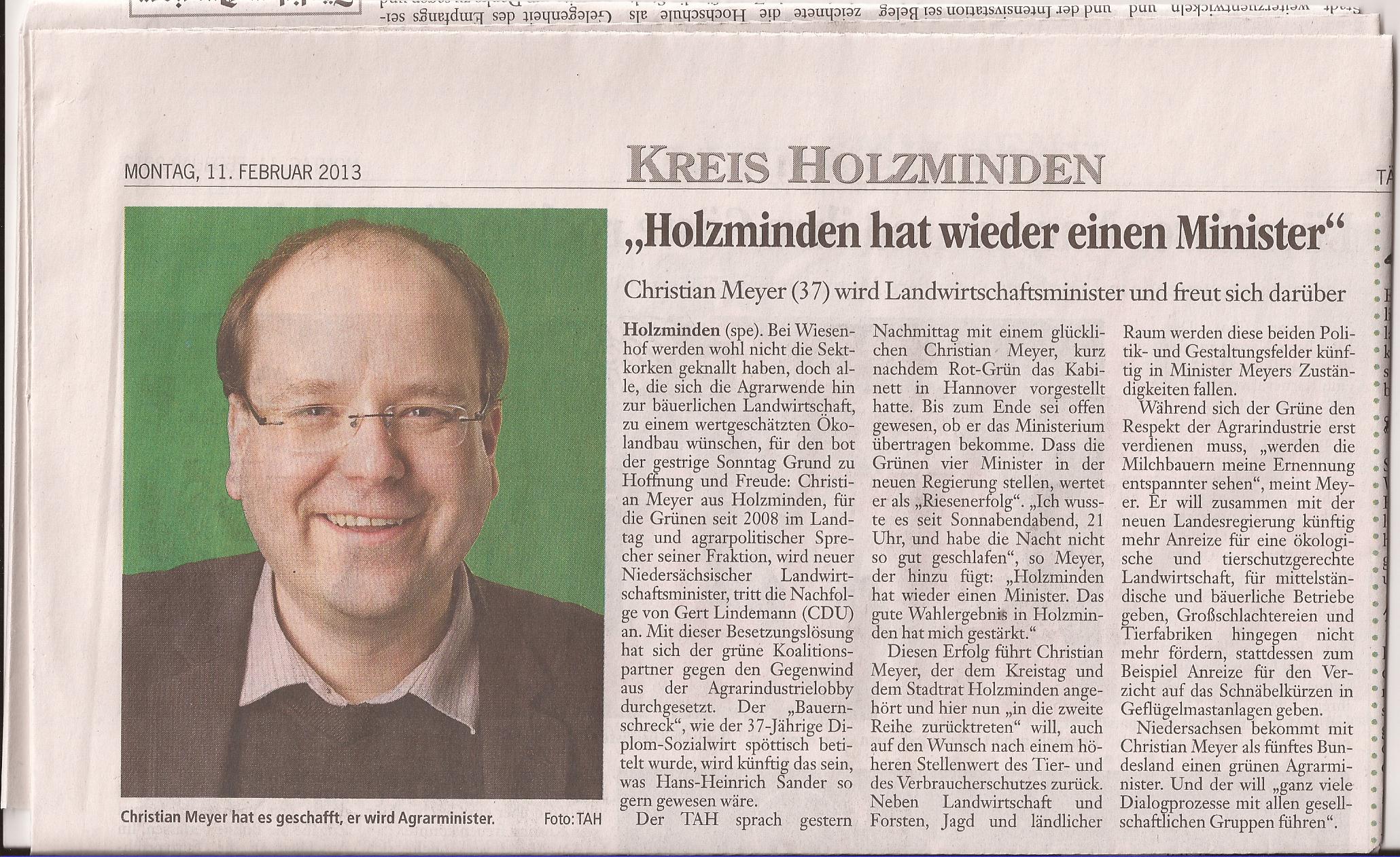 TAH 11.02.2013 „HOLZMINDEN HAT WIEDER EINEN MINISTER“