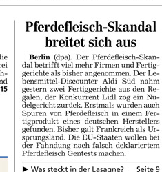 HAZ 16.02.2013 PFERDEFLEISCH-SKANDAL BREITET SICH AUS