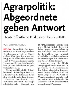 HAZ DA 16.02.2013 AGRARPOLITIK ABGEORDNETE GEBEN ANTWORT