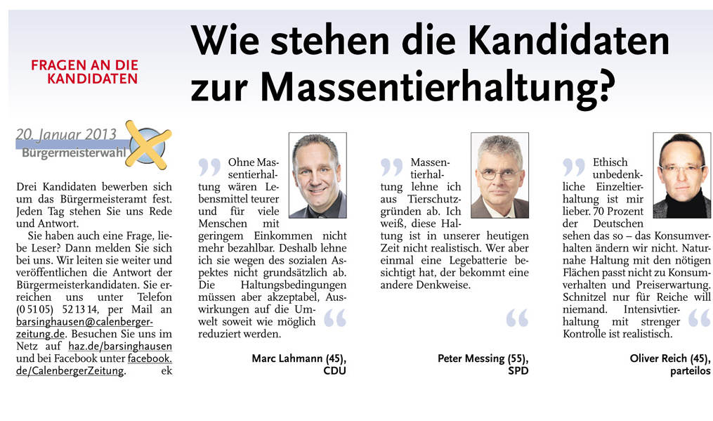 HAZ CZ 04.01.2013 WIE STEHEN DIE KANDIDATEN ZUR MASSENTIERHALTUNG