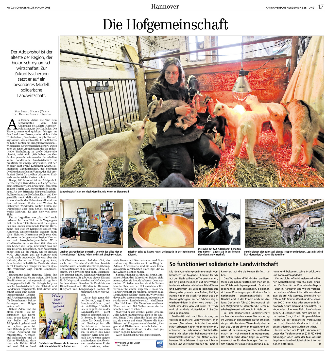 HAZ 26.01.2013 DIE HOFGEMEINSCHAFT