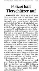 HAZ 09.07.2013 POLIZEI HÄLT TIERSCHÜTZER AUF