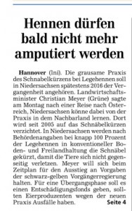 HAZ TITELSEITE 09.07.2013 HENNEN DÜRFEN BALD NICHT MEHR AMPUTIERT WERDEN