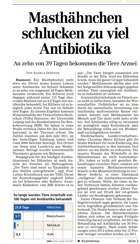 HAZ TITELSEITE 10.07.2013 MASTHÄHNCHEN SCHLUCKEN ZU VIEL ANTIBIOTIKA