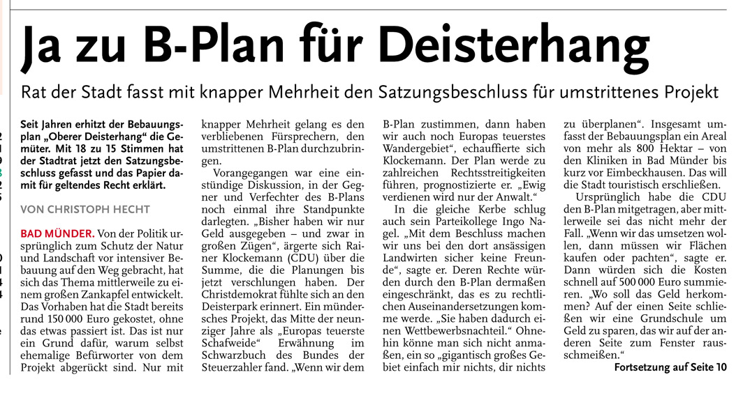 HAZ DA 17.06.2013 JA ZU B-PLAN FÜR DEISTERHANG