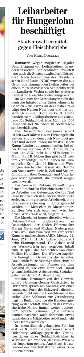 HAZ 24.06.2013 LEIHARBEITER FÜR HUNGERLOHN BESCHÄFTIGT