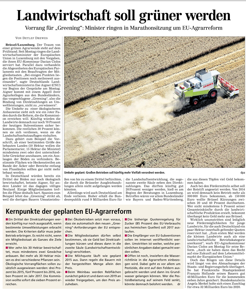HAZ 25.06.2013 LANDWIRTSCHAFT SOLL GRÜNER WERDEN