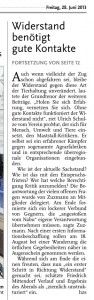HAZ DA 28.06.2013 WIDERSTAND BENÖTIGT GUTE KONTAKTE