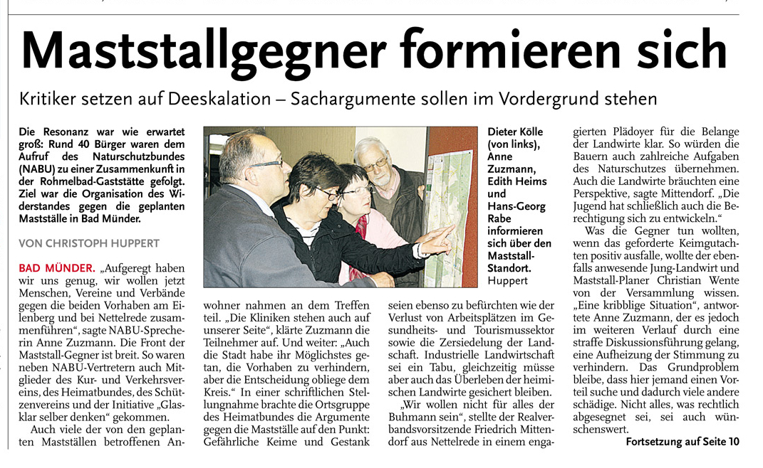 HAZ DA 28.06.2013 MASTSTALLGEGNER FORMIEREN SICH