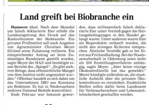 HAZ TITELSEITE 13.05.2013 LAND GREIFT BEI BIOBRANCHE EIN