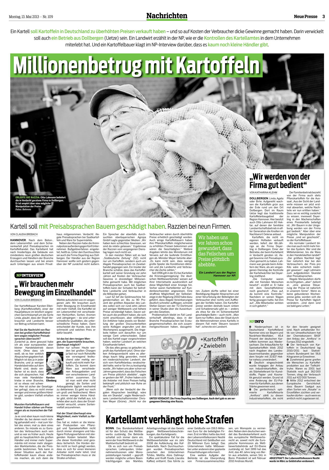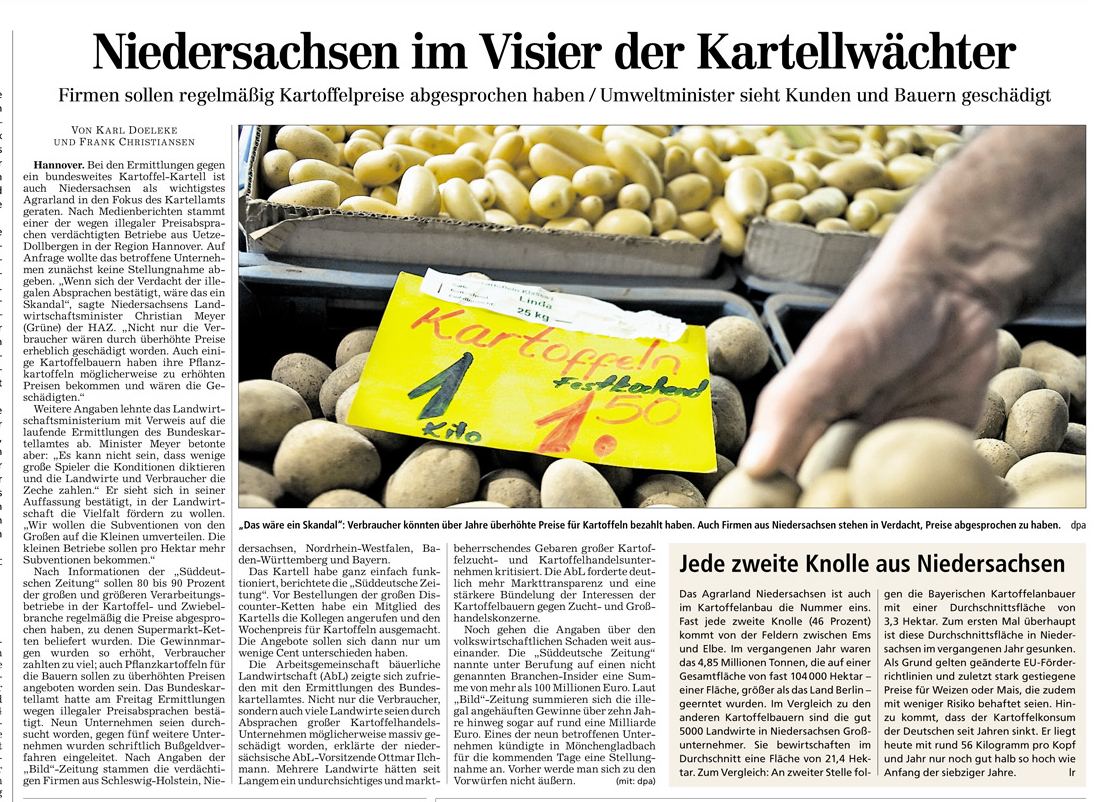 HAZ TITELSEITE 13.05.2013 KARTOFFEL-KARTELL REICHT BIS HANNOVER