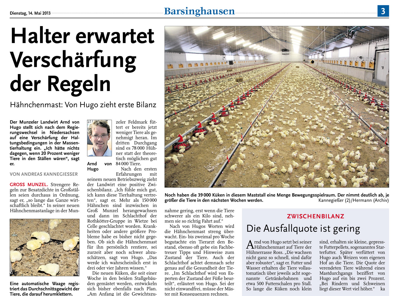 HAZ CZ 14.05.2013 HALTER ERWARTET VERSCHÄRFUNG DER REGELN