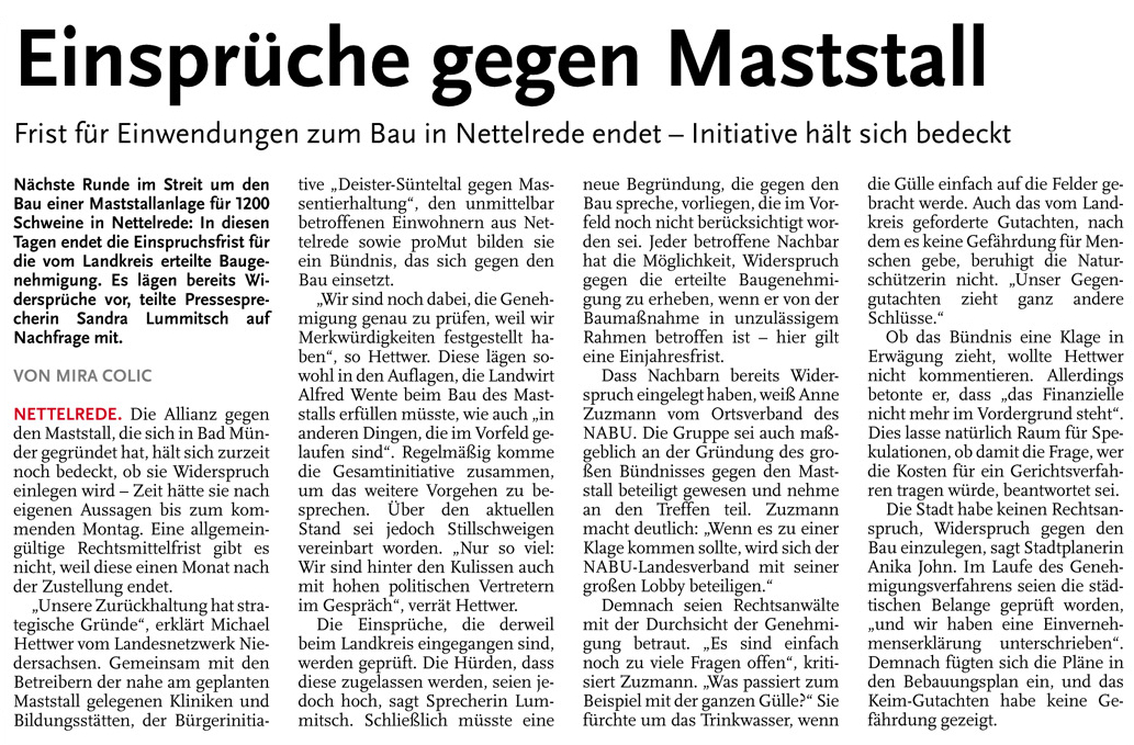 HAZ DA 14.11.2013 EINSPRÜCHE GEGEN MASTSTALL