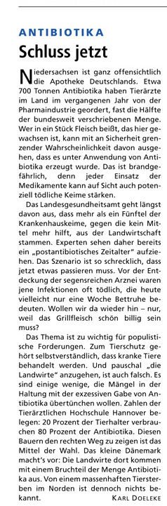 HAZ KOMMENTAR 14.11.2013 ANTIBIOTIKA – SCHLUSS JETZT