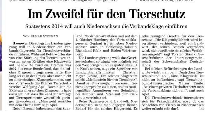 HAZ 07.10.2013 IM ZWEIFEL FÜR DEN TIERSCHUTZ