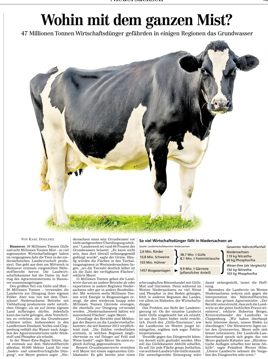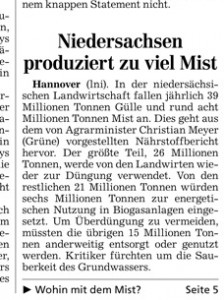 HAZ 24.10.2013 NIEDERSACHSEN PRODUZIERT ZU VIEL MIST