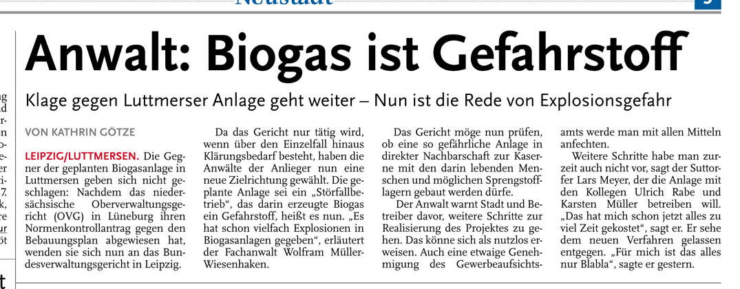 HAZ LZS 24.10.2013 ANWALT: BIOGAS IST GEFAHRSTOFF
