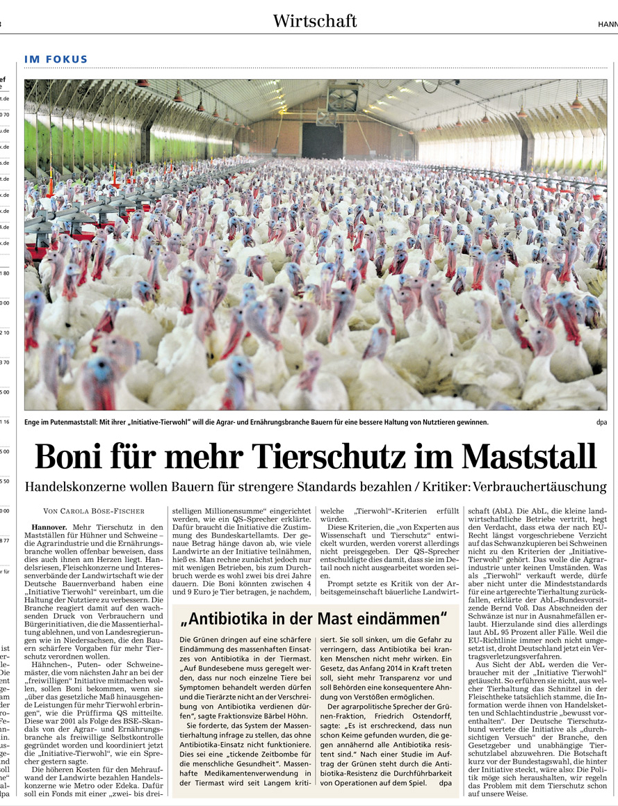 HAZ 07.09.2013 BONI FÜR MEHR TIERSCHUTZ IM MASTSTALL
