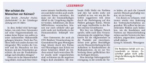 HAZ CZ 03.04.2014 LESERBRIEF GEORG H. SCHMIDT, WENNIGSEN