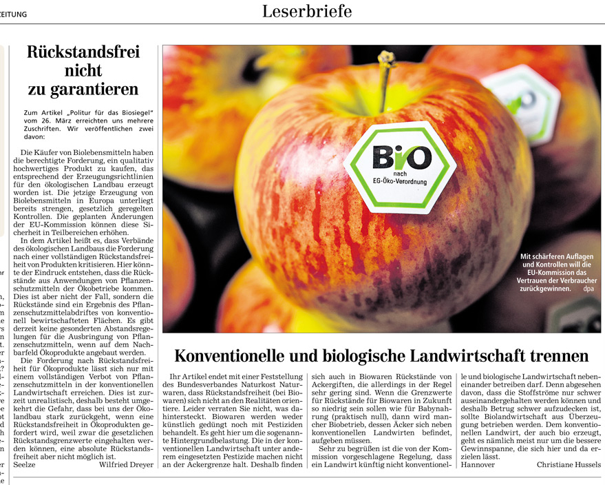 HAZ 04.04.2014 LESERBRIEFE CHRISTIANE HUSSELS, HANNOVER WILFRIED DREYER, SEELZE