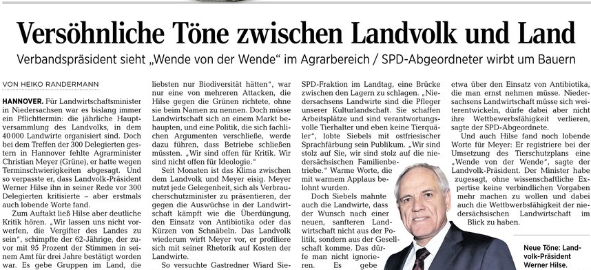 HAZ 04.12.2014 VERSÖHNLICHE TÖNE ZWISCHEN LANDVOLK UND LAND